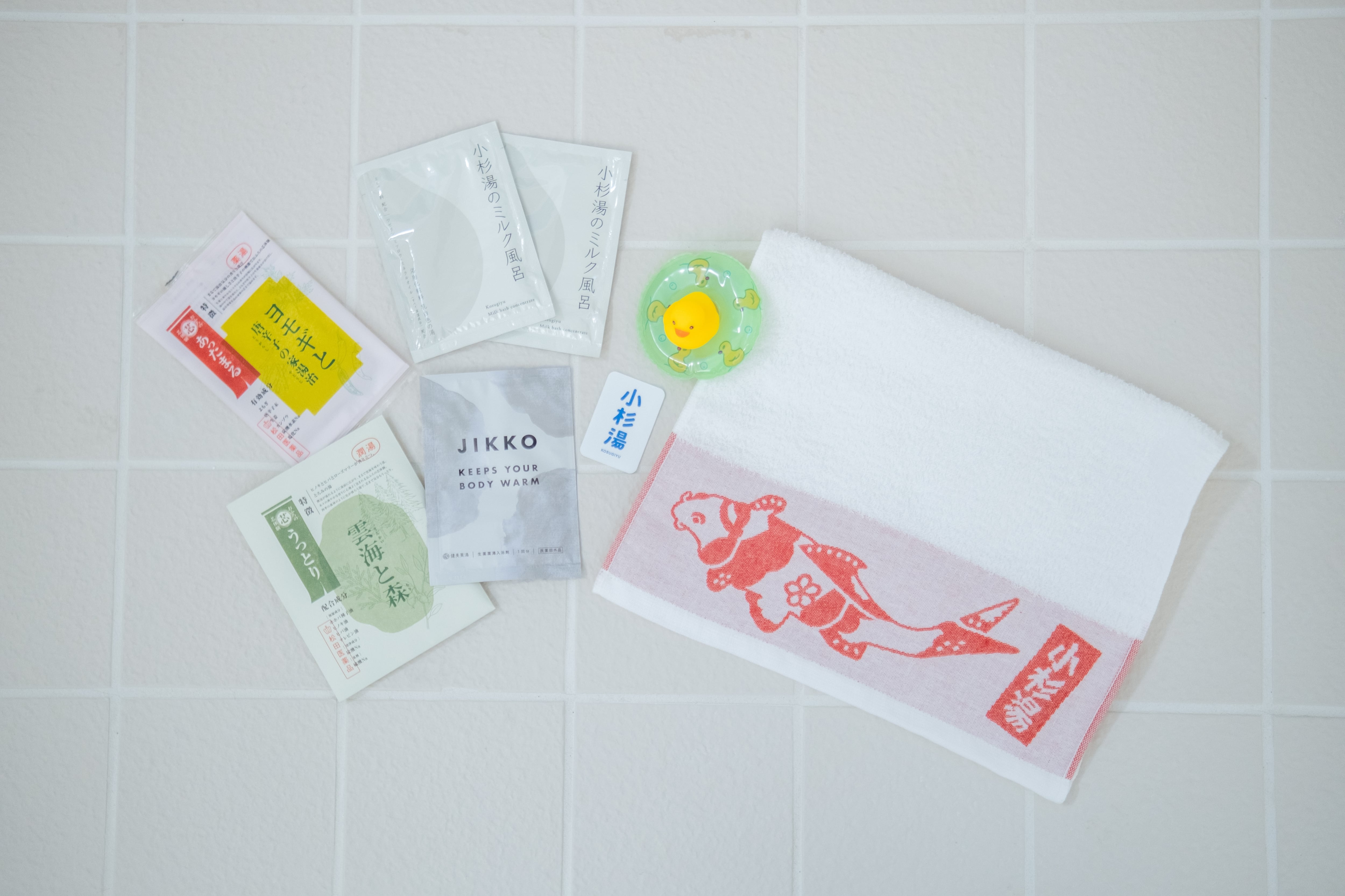 小杉湯のミルク風呂と、毎月の変わり湯で親しまれている入浴剤を詰め込みました。