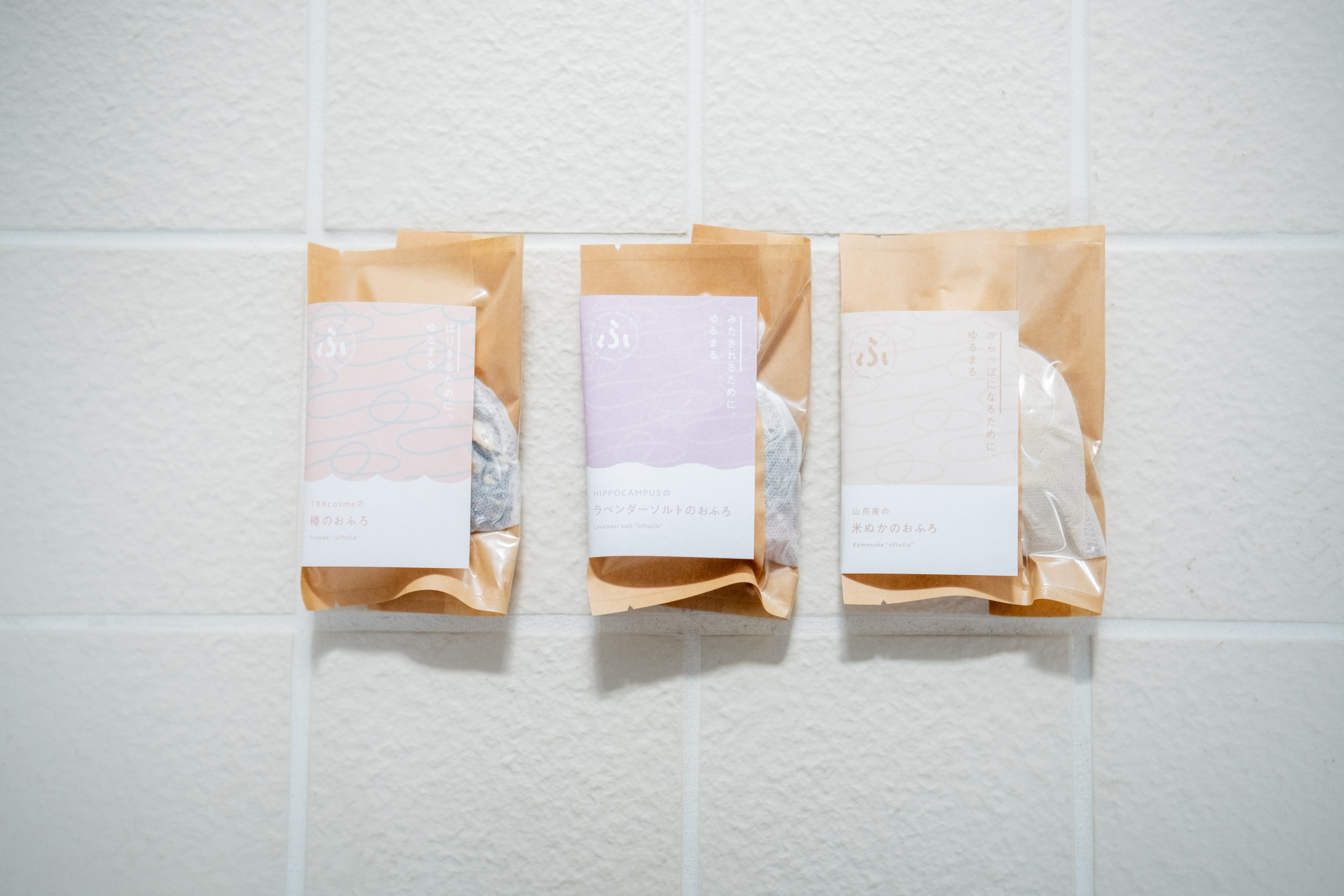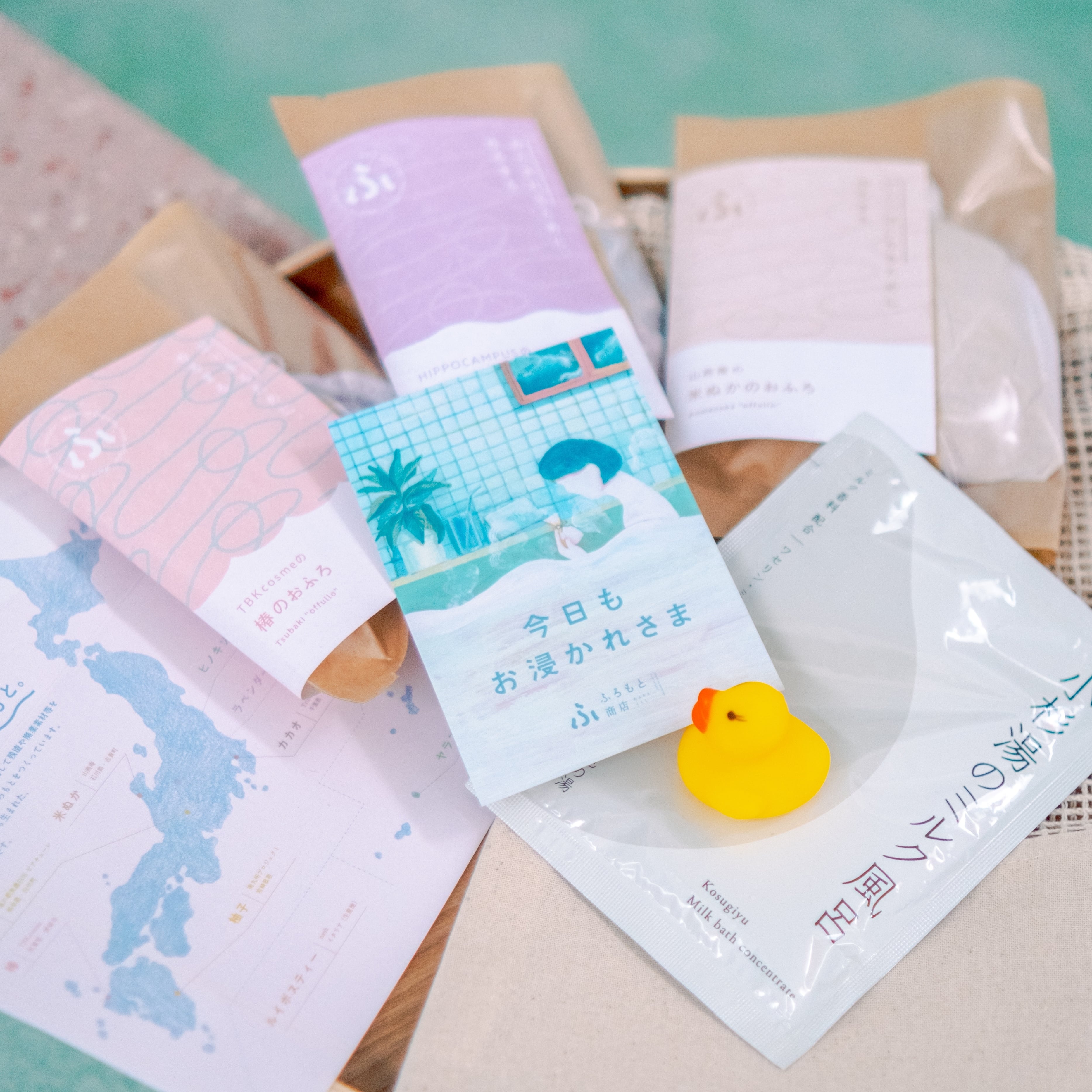 ・おふろのもとは一つ一つ手作業で袋に入れています。強く触ると中身が出る可能性があるので、湯船に入れる際は優しく入れてください。