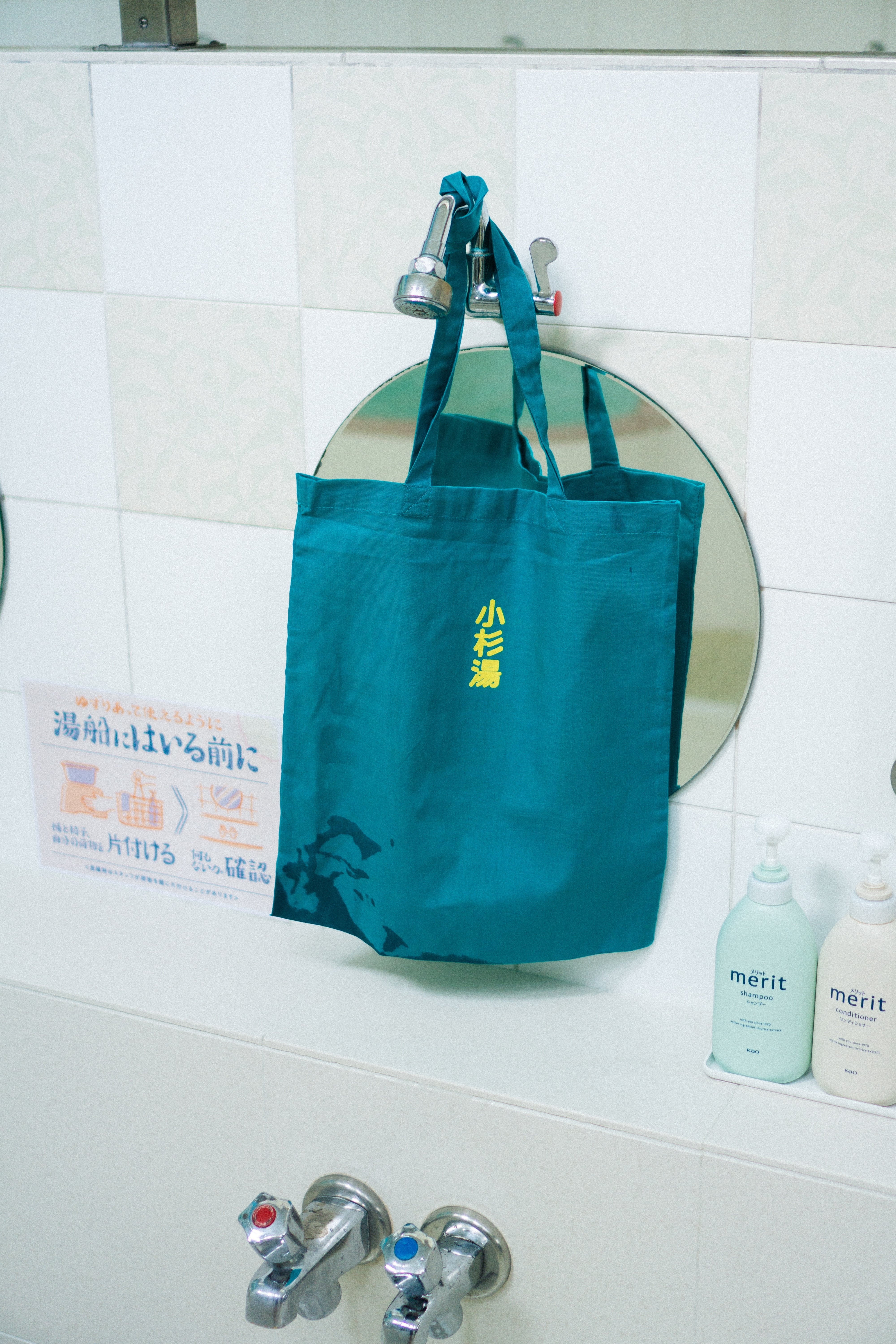 小杉湯の4つの湯船にちなんだカラフルなトートバッグ。