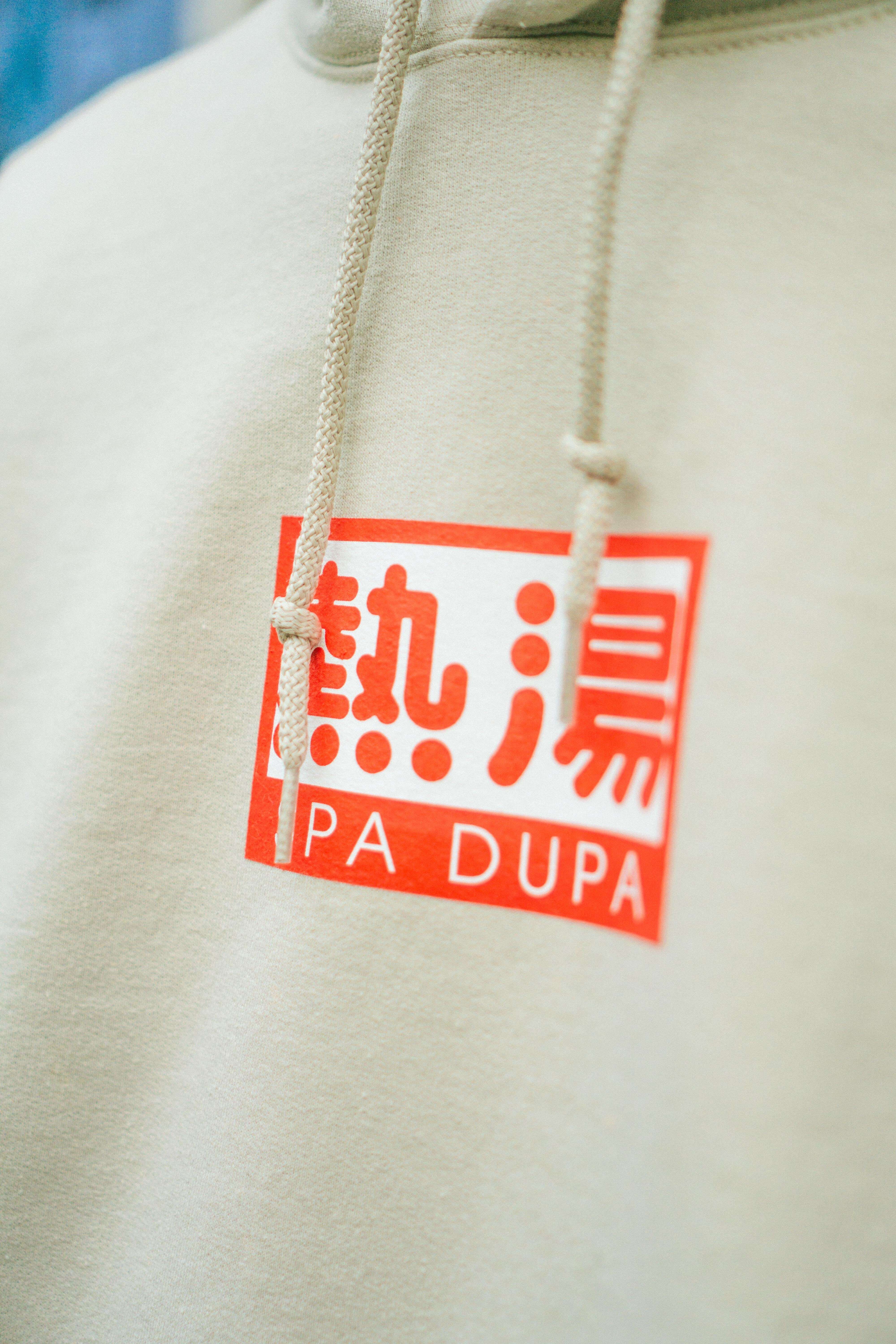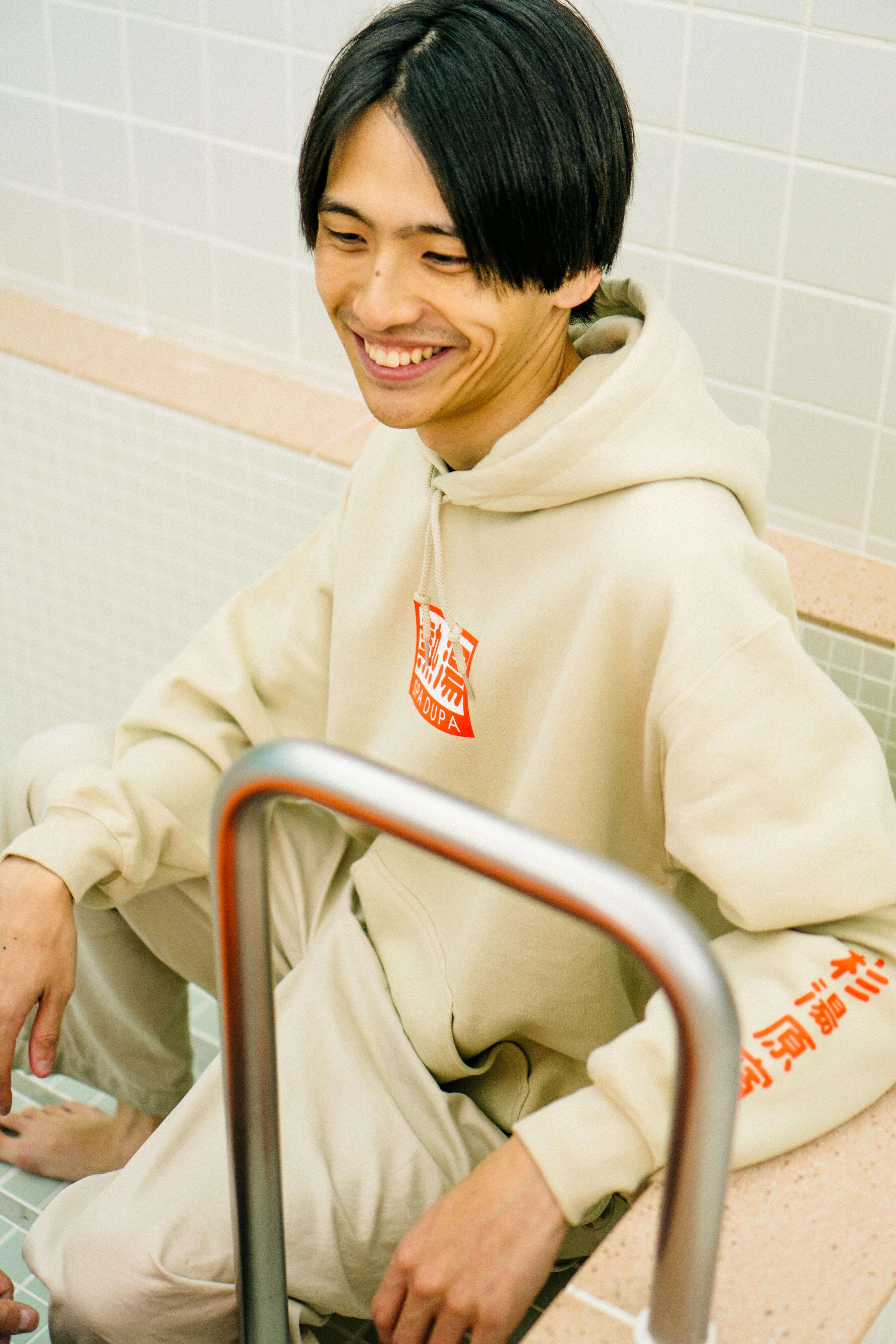 胸元に刻まれた「熱湯」と「水風呂」の文字で、心地よい交互浴を身につけられるパーカーに。